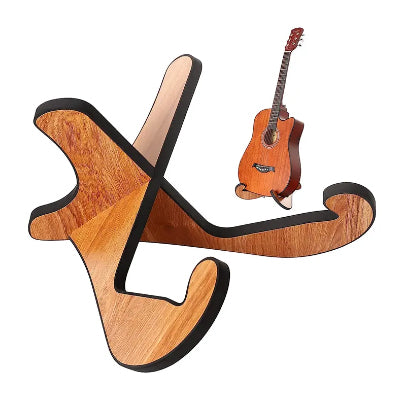 Transform your living space with this elegant single guitar rack. Easy to assemble (no screws) and sturdy too. Made of MDF and smooth wood-look veneer, rubber lined.
