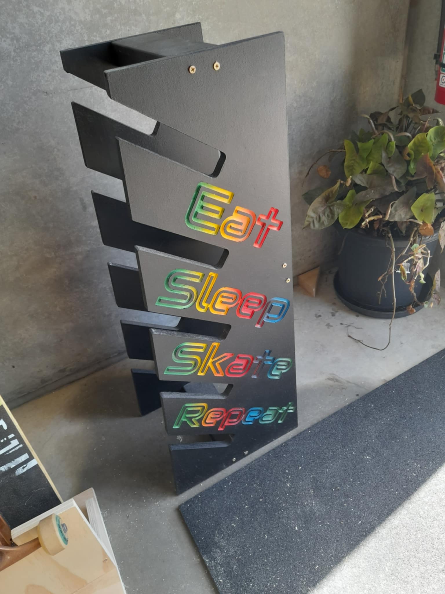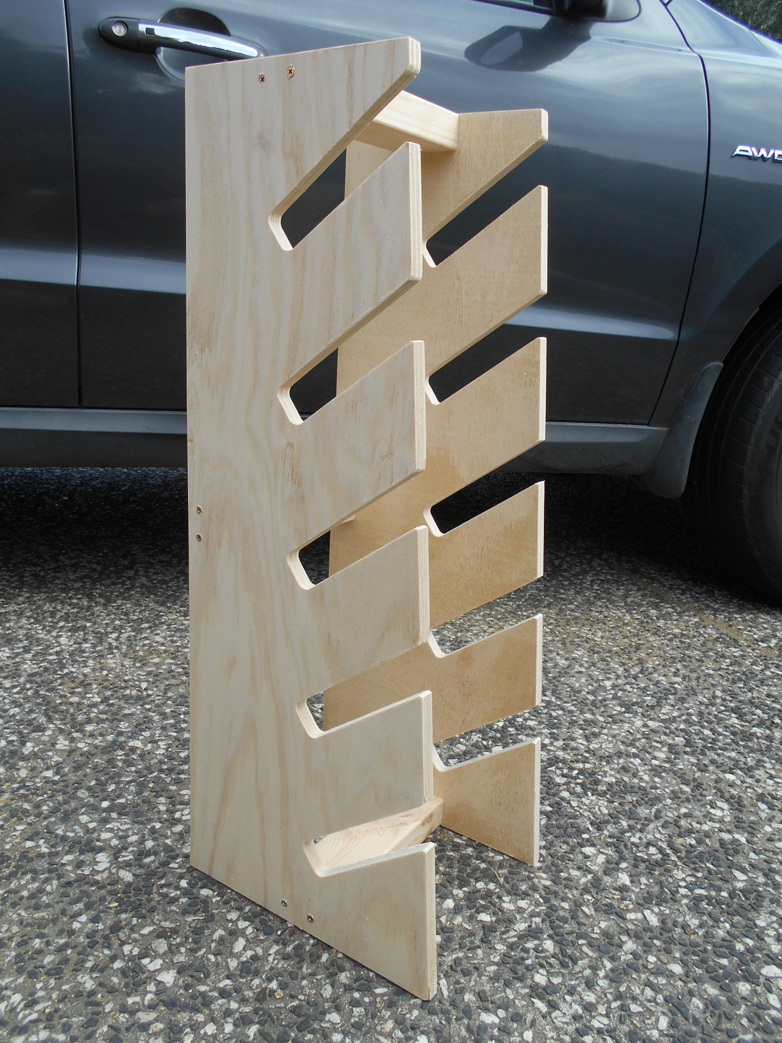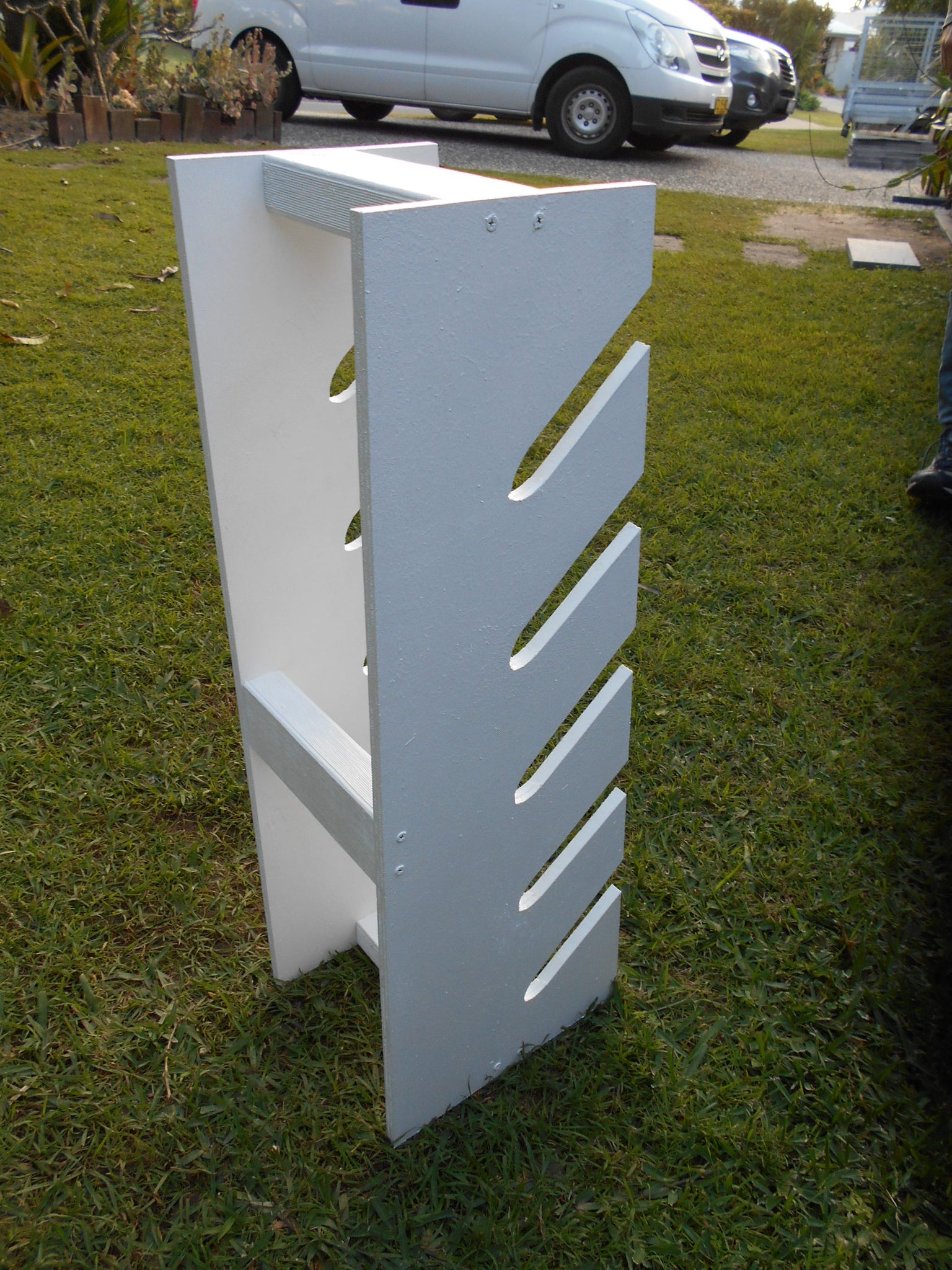 Made of plywood with pine support beams. 85cm height, 25cm depth, 20cm width.
